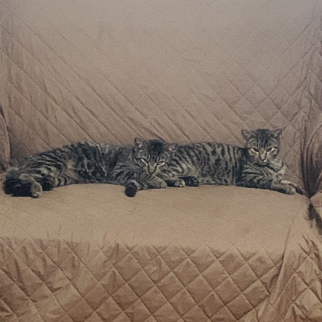Jennifer and I spent quality time with them as they ate dinner (I did not linger over their breakfast) and spent a few hours each evening with them, getting them used to people, socializing in general, snuggling, etc.